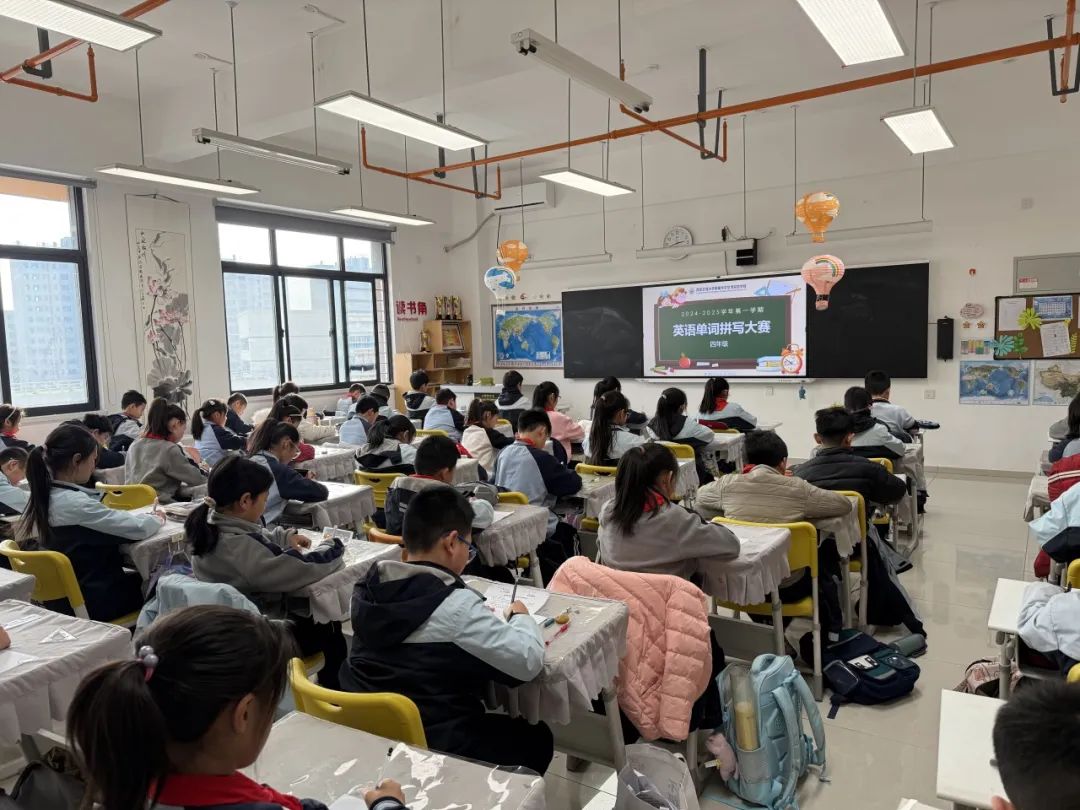 一张纸,一支笔,熟悉的单词不断地涌现在脑海中,同学们转动笔尖,快速地进行单词拼写。