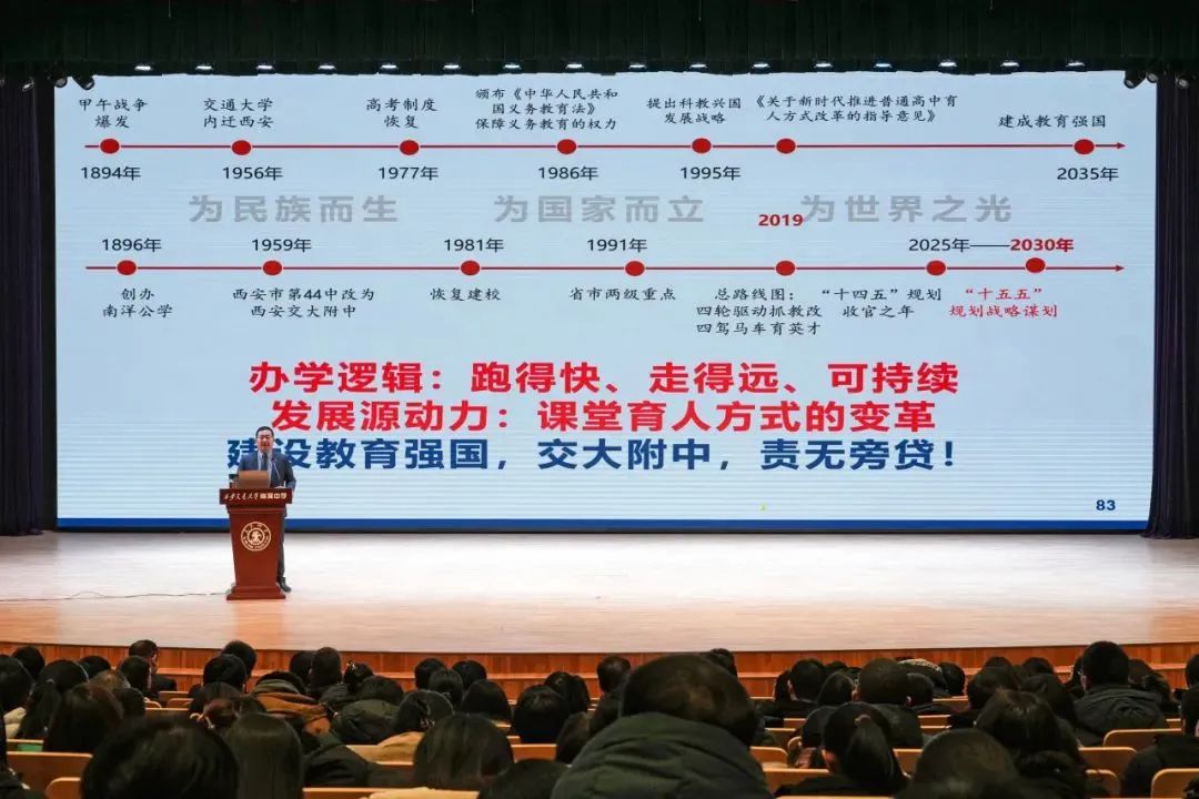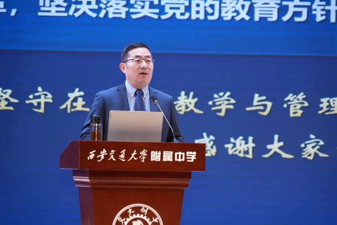 “不断追问和推进育人方式的改革,坚决落实党的教育方针,办好交大附中的教育事业”訾艳阳从学校特色到特色学校,如何实现交大附中做“真、好、人”的教育追求,做了详细论述。他特别强调,学校发展的源动力是课堂育人方式的变革,全体师生要积极响应国家对教育强国建设的要求,秉承“注重学生的全面发展和终身成长” ,以更加坚定的步伐和昂扬的姿态,迈向教育的新征程,让每一位学生都能在这里找到属于自己的舞台,成为更好的自己,为2035年建成教育强国的宏伟目标贡献交大附中的智慧和力量!