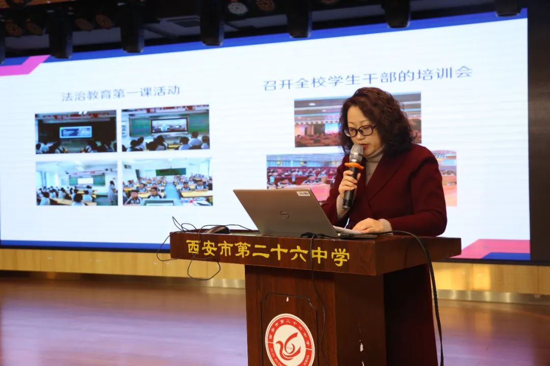 杜莉副校长汇报了本学期本部和太乙德育工作,并对优秀班主任、班主任手册特等奖、西安市教育教学能手等奖项进行表彰。本学期西安市第二十六中学继续深化立德树人根本任务,在细化强化常规管理的基础上,重视师生心理健康,立足活动育人,坚持五育并举,加强家校社协同育人,求真务实、追求实效,培根铸魂,启智润心,奋力书写26中教育集团德育工作的崭新篇章。