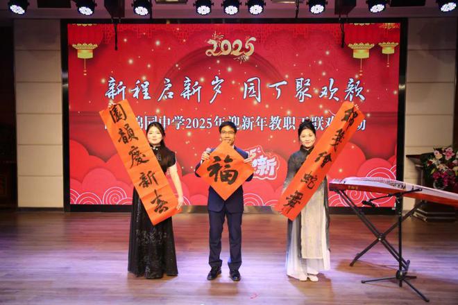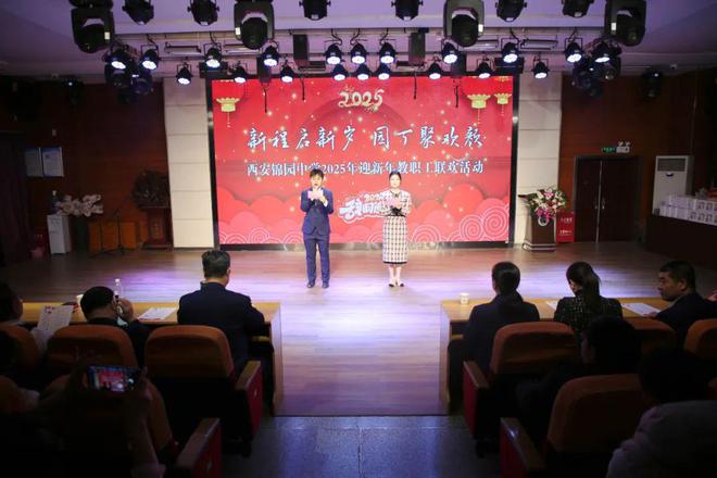 在辞旧迎新的美好时刻,西安锦园中学教职工联欢活动如约而至,如同一束璀璨的光芒,照亮了校园的每一个角落,为辛勤耕耘在教育一线的教职工们带来了一场别开生面、温馨欢乐的盛宴。此次活动以“新程启新岁,园丁聚欢颜”为主题,不仅是一场才艺的展示,更是一次心灵的交融,凝聚着全体教职工对学校的热爱与对未来的期许,联欢会由赵斯萌老师、张承栋老师主持,全体教师及工勤安保人员参加了联欢。