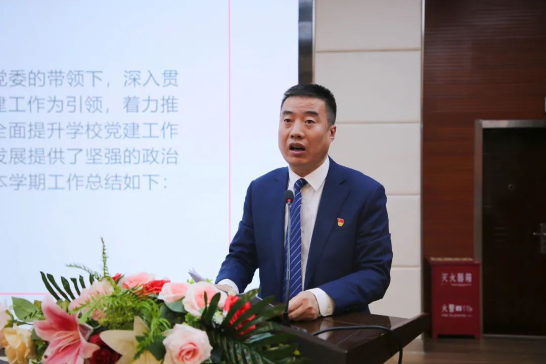 大会伊始,安全副校长邢红波率先进行党建和后勤工作汇报。在党建工作方面,邢校长详细阐述了学校党组织开展的各项活动,包括党员学习教育、主题党日活动等,强调党建引领在学校发展中的重要作用。同时,他还对后勤工作的成果进行展示,如校园设施的维护与更新、校园餐的整治等,这些举措为学校的正常运转和师生的学习生活提供了坚实保障。