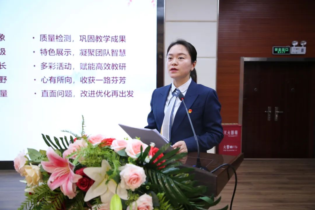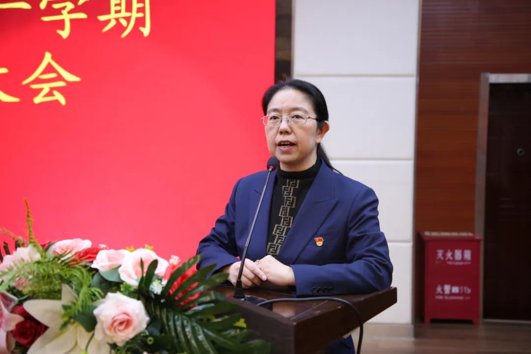 紧接着,教学副校长李斌侠聚焦教学教研工作进行汇报。她回顾了本学期教学计划的实施情况,展示了师生在各类教学竞赛和考试中的优异成绩。李校长指出,学校一直致力于推动教学改革,通过开展多样化的教研活动,如公开课、示范课、教学研讨等,促进教师教学水平的提升。在新的一年,学校将继续秉持教育初心,深化教学改革,加强课程建设,探索更适合学生发展的教学模式。
