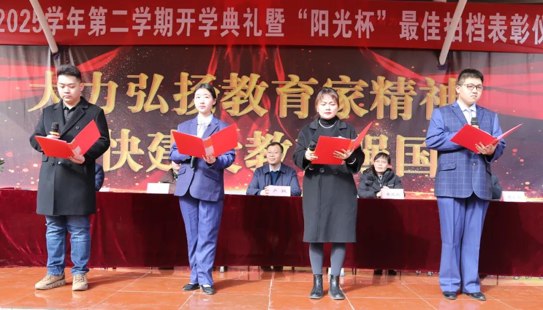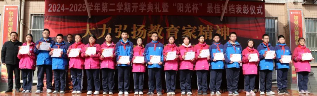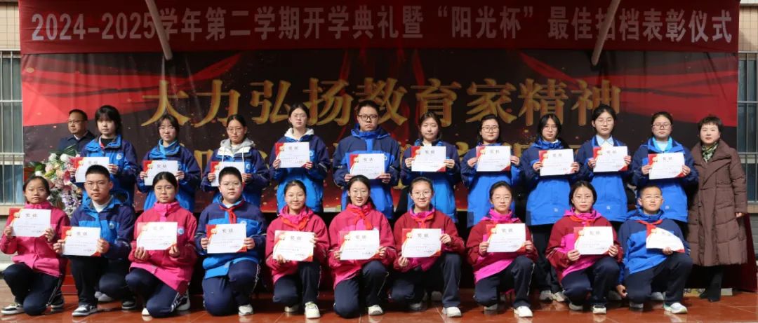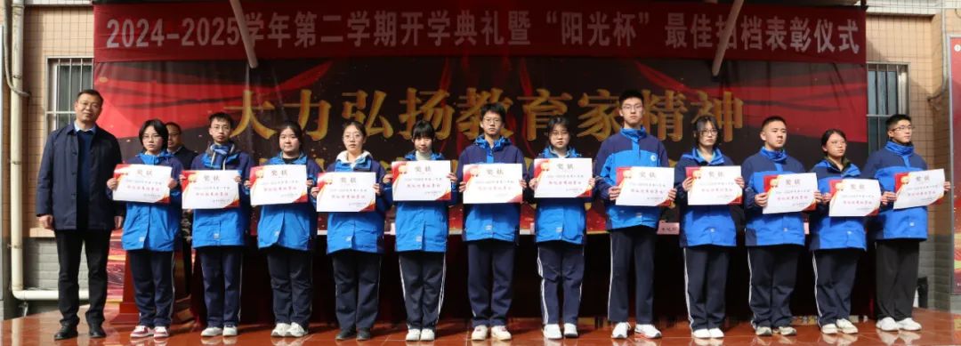 开学典礼上,学校对上学期表现突出的集体和个人进行了表彰。校领导分别为“阳光杯最佳拍档”获奖者、校级优秀班集体、优秀学生会干部、优秀班干部、三好学生及学习标兵颁发了荣誉证书。这份荣誉不仅对过去努力的肯定,更是激励全体师生在新学期奋勇争先的动力源泉。
