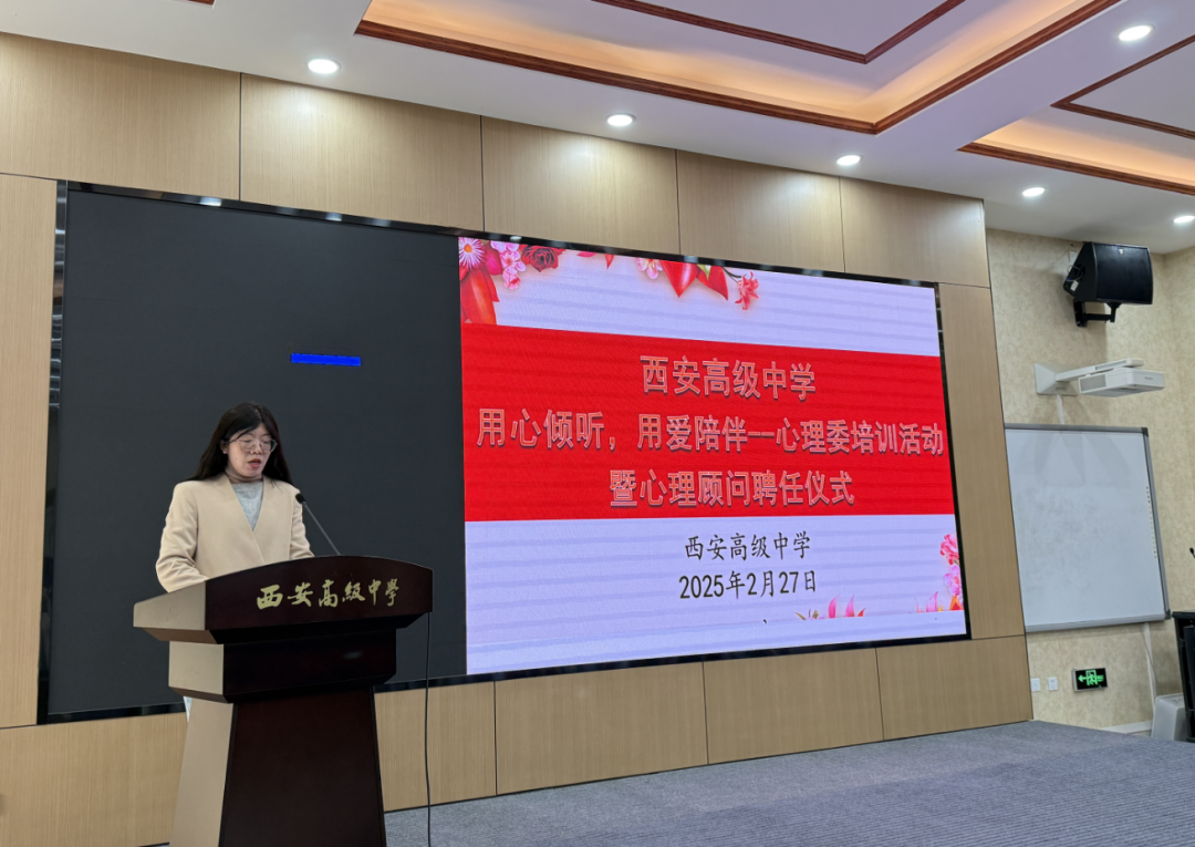 为加强学校心理健康教育工作,提升心理委员的专业素养与能力,西安高级中学于2025年2月27日下午举办了“用心倾听,用爱陪伴”心理委员培训活动暨心理顾问聘任仪式。
