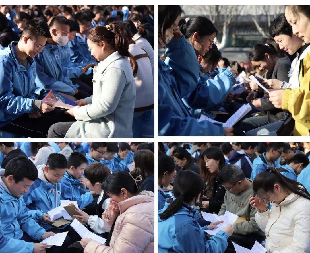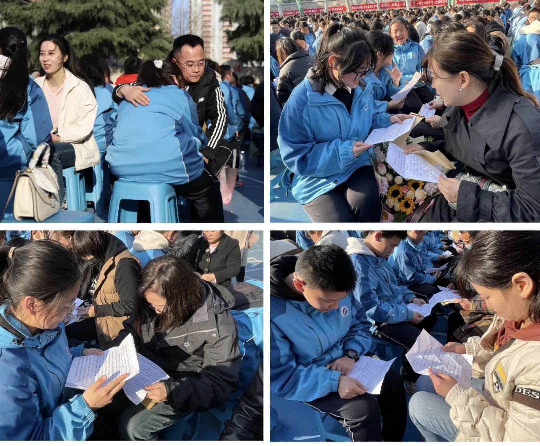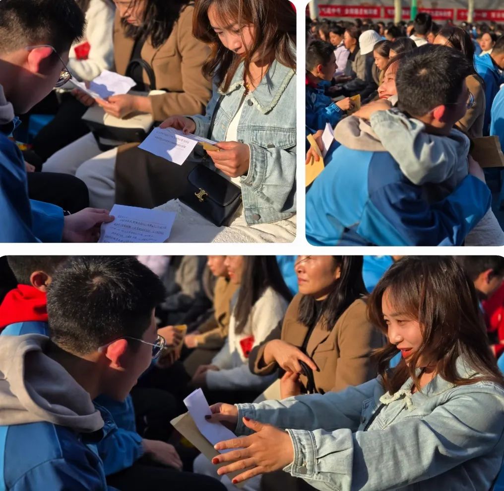 展信如晤,见字如面,学生与家长交换信件,这一刻,时间仿佛静止。信纸上,字里行间流淌着浓浓的爱与期望。家长们用文字表达了对孩子的鼓励与支持,孩子们则用稚嫩的笔触写下了对未来的憧憬与决心。书信传情,心手相连,这一刻,亲情的力量在无声中传递,成为学子们前行的动力。百日冲刺,家校同心,共同助力梦想的飞翔!