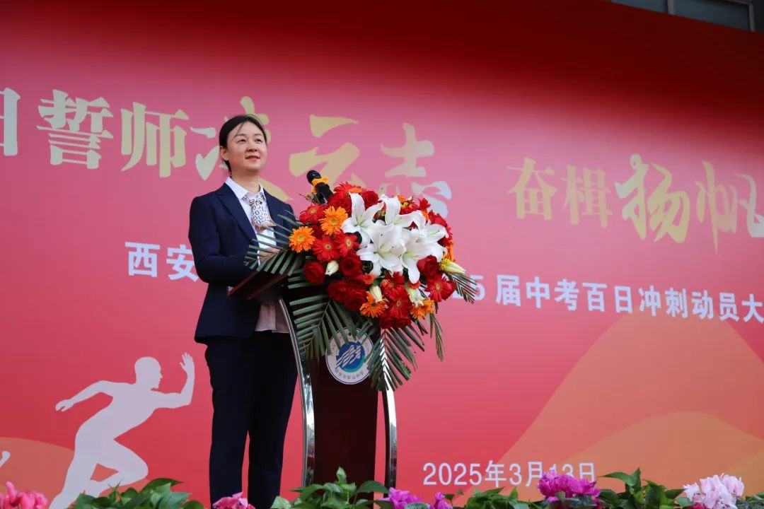 初三年级组长刘岚老师走上讲台,目光坚定,话语铿锵。刘老师回顾了三年来的奋斗历程,展望了未来的美好前景,鼓励同学们在最后的一百天里,坚持不懈,勇往直前。她的寄语充满了力量与期望,仿佛一盏明灯,照亮了学子们前行的道路,激励大家奋勇拼搏,不负青春!