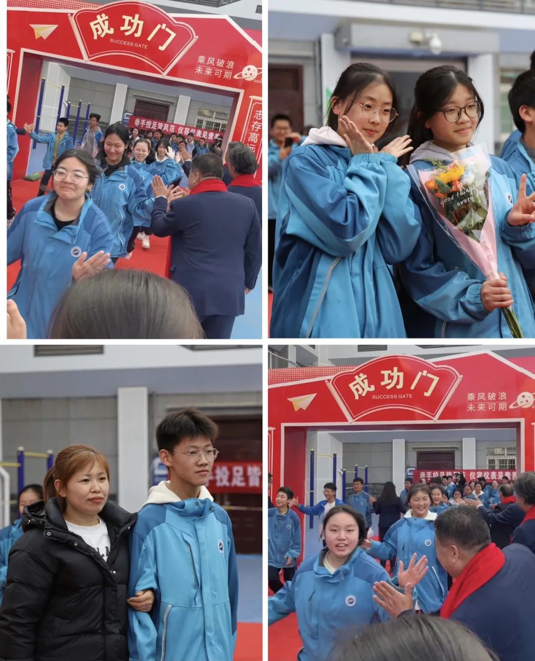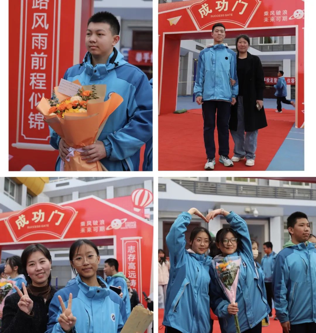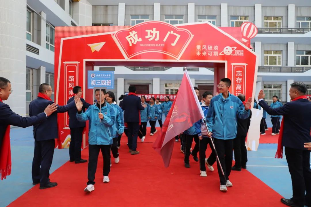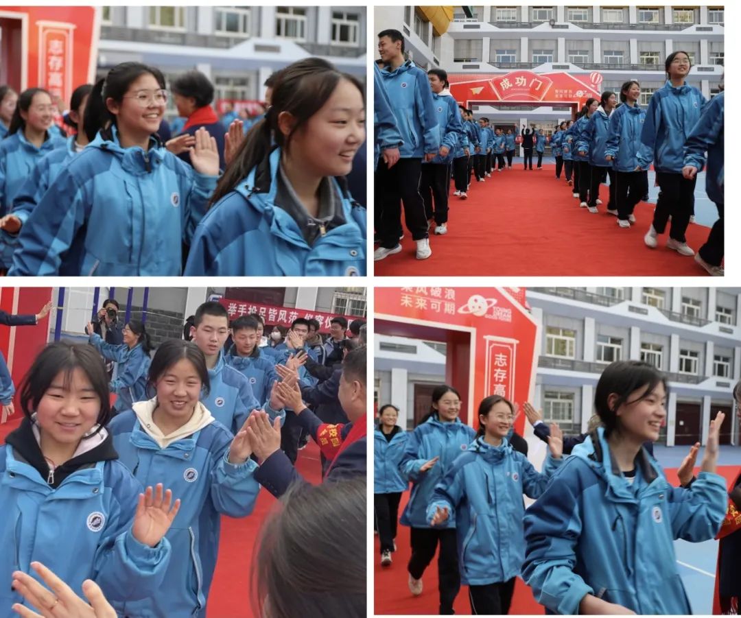 全体学生满怀信心,走过成功门,踏上成才路。成功门象征着胜利与希望,成才路代表着奋斗与未来。此去鹏程九万里,莫忘初心守始终!百日战鼓擂响,同学们必将以梦为马、以笔为戈,分秒必争搏击书山题海,斗志昂扬携手共创辉煌!