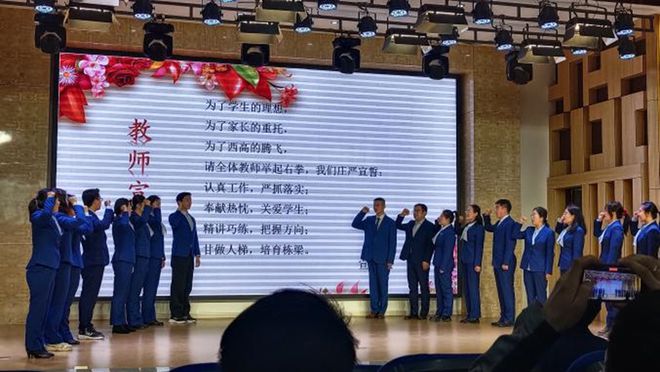 全体初三教师在年级组长何春芳老师的带领下庄严宣誓,表达了老师与学生同甘共苦、风雨同舟的决心。