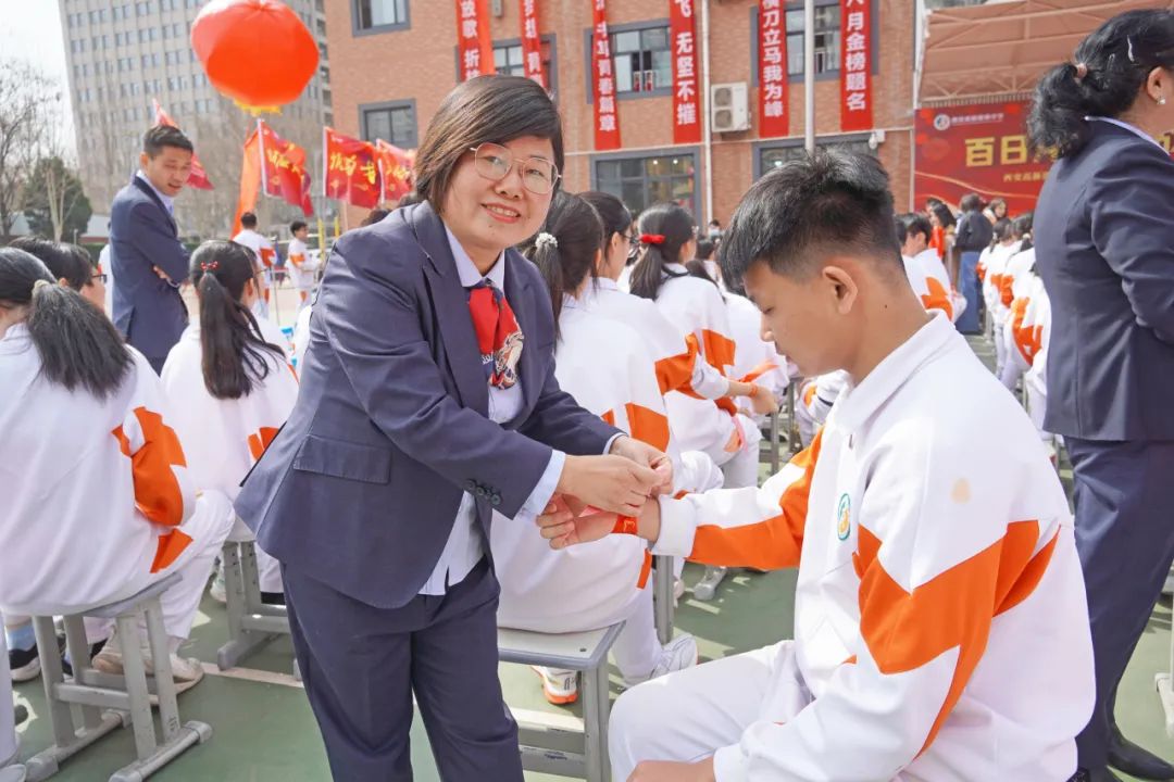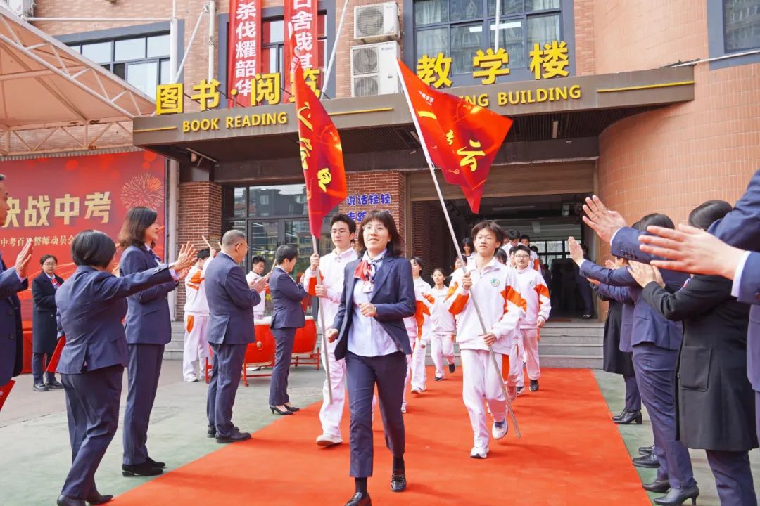 九年级五班崔玟浠同学代表全体学生表达了奋战中考的决心和信心。她希望在最后的一百天里,与所有同学们一起奋进,独立思考、专注自身,拒绝内耗、积极备考,心无旁骛、坚定目标,用如磐信念奋战到底,将用炽热情怀点燃六月。