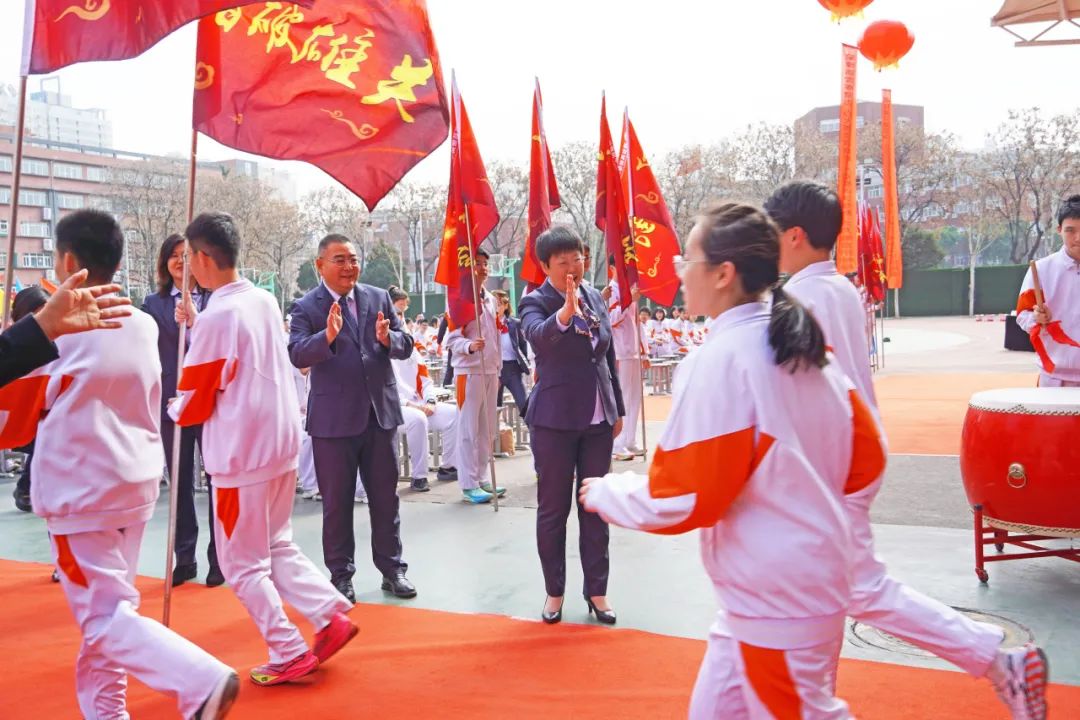 2025年3月13日上午,西安高新唐南中学校园中旌旗招展、誓言声铿锵,2025届中考百日誓师动员会隆重召开。学校领导、九年级师生和家长代表们齐聚操场,共同为百日冲刺揭幕,为奋进征程呐喊,为青春梦想加油!