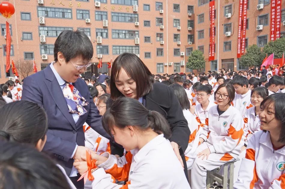 校领导和师长们为每一位同学系上加油腕带,送上了最真挚的祝福。