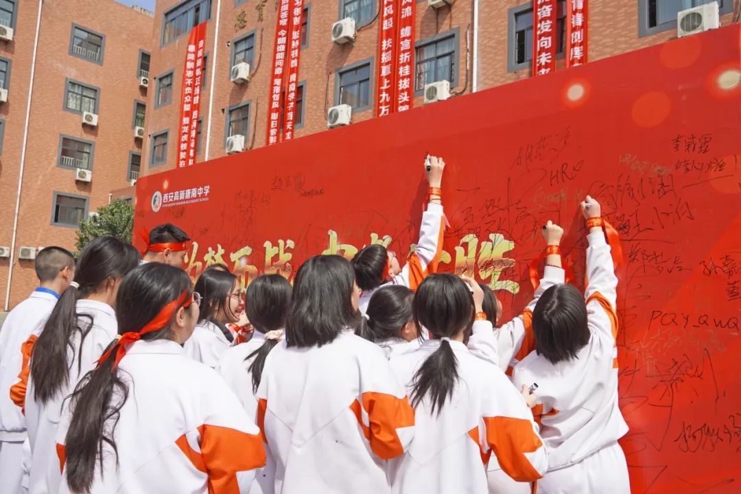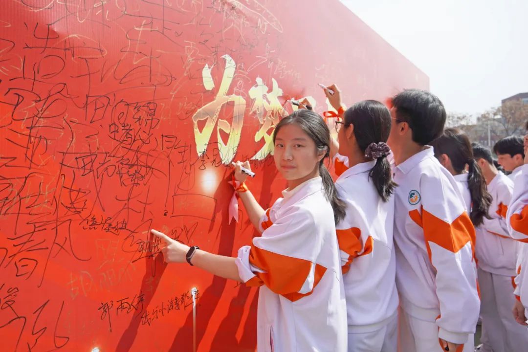 在校领导的带领下,学子们斗志昂扬地跃过“龙门”,来到在誓言墙前签名,写下殷殷期许,共立铮铮誓言。
