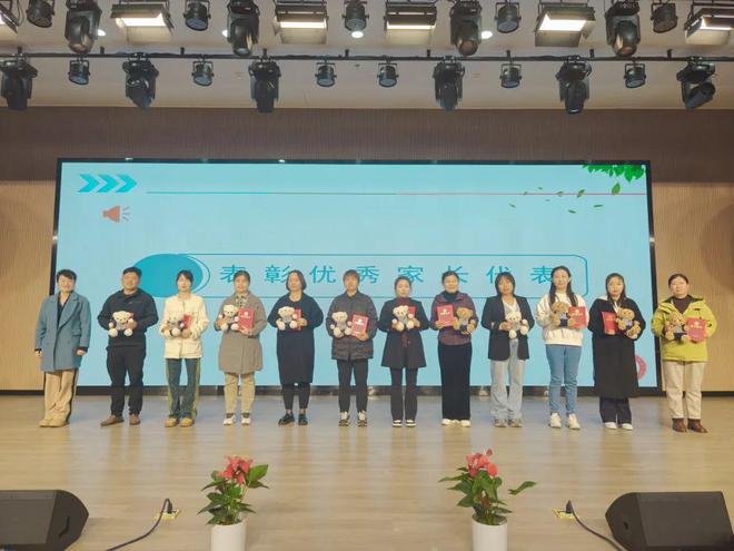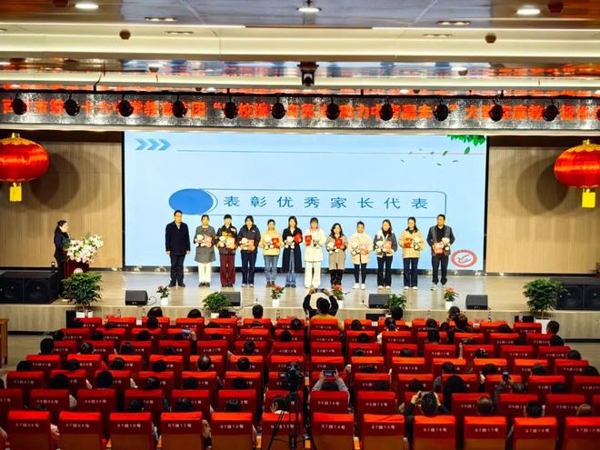 本次家庭教育报告会由分校政教处黄欢主任支持。王同洲校长及分校德育校长许亚红副校长分别致辞。学校同时表彰了在家校共育工作中表现突出的优秀家长代表,感谢家长们对学校工作的大力支持与配合。王同洲校长、吉小玉书记分别为优秀家长代表颁发获奖证书与文创纪念品。