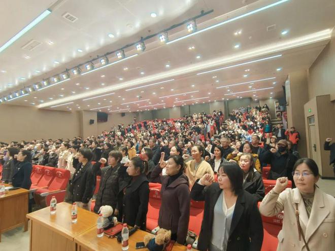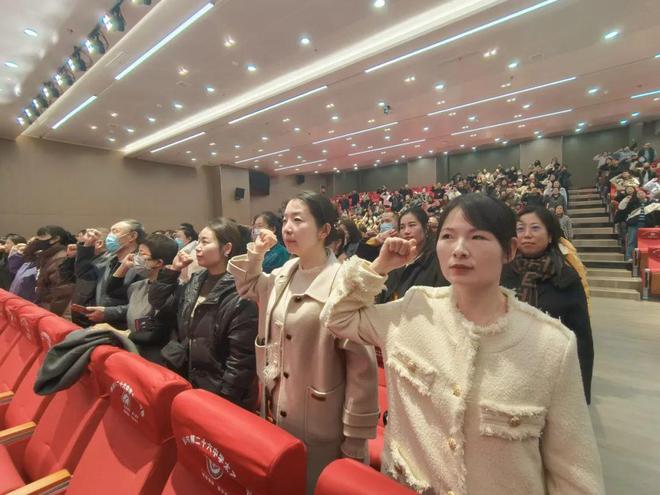 讲座结束后,家长沙龙和现场互动答疑环节进一步加深了家长与专家的互动,家长们踊跃提问,专家耐心解答,现场气氛热烈,掌声不断。最后,全体家长在“家长陪伴行动倡议”环节中庄严宣誓,承诺将全力以赴支持孩子,陪伴他们度过中考这一重要阶段。这场充满智慧与温情的“家长成长课”,为焦虑与期待交织的备考家庭点亮了一盏明灯。