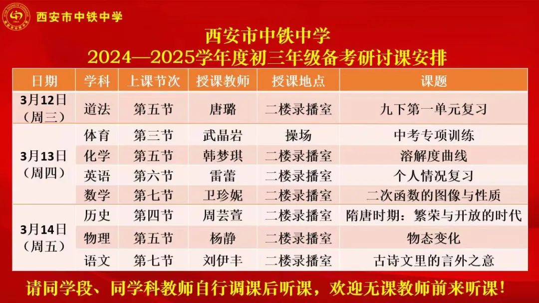西安市中铁中学组织开展初2025届中考备考研讨课活动!