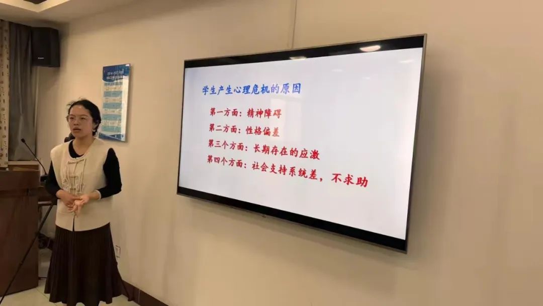 随后,苏老师具体讲解了当发现心理危机个案后,如何转介心理问题风险学生,如何进行危机干预的原则和步骤,以及各部门之间如何协作应对等等。让每一位老师都更加熟悉心理危机干预的流程。
