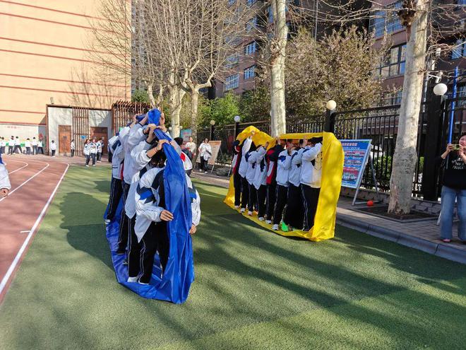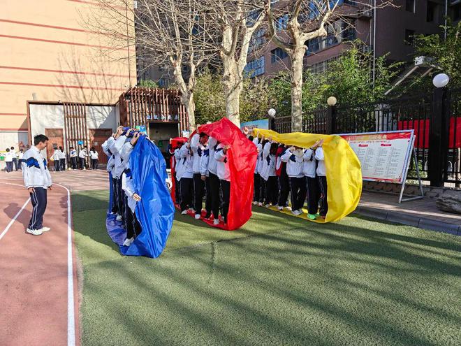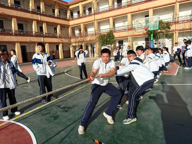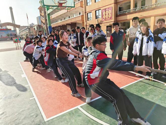 跳绳场上,同学们“绳”采飞扬,挑战自我,每一次起跳都奏响活力的乐章;踢毽子的同学们则沉浸在非遗的魅力中,脚尖轻点,快乐满溢;拔河比赛中,力与智的巅峰对决点燃了青春的激情,班级凝聚力在呐喊声中爆棚;排球和篮球场上,洁白的排球如灵动的白鸽,篮球少年们变向、转身、加速,一气呵成,用运动诠释着青春的热血与活力。
