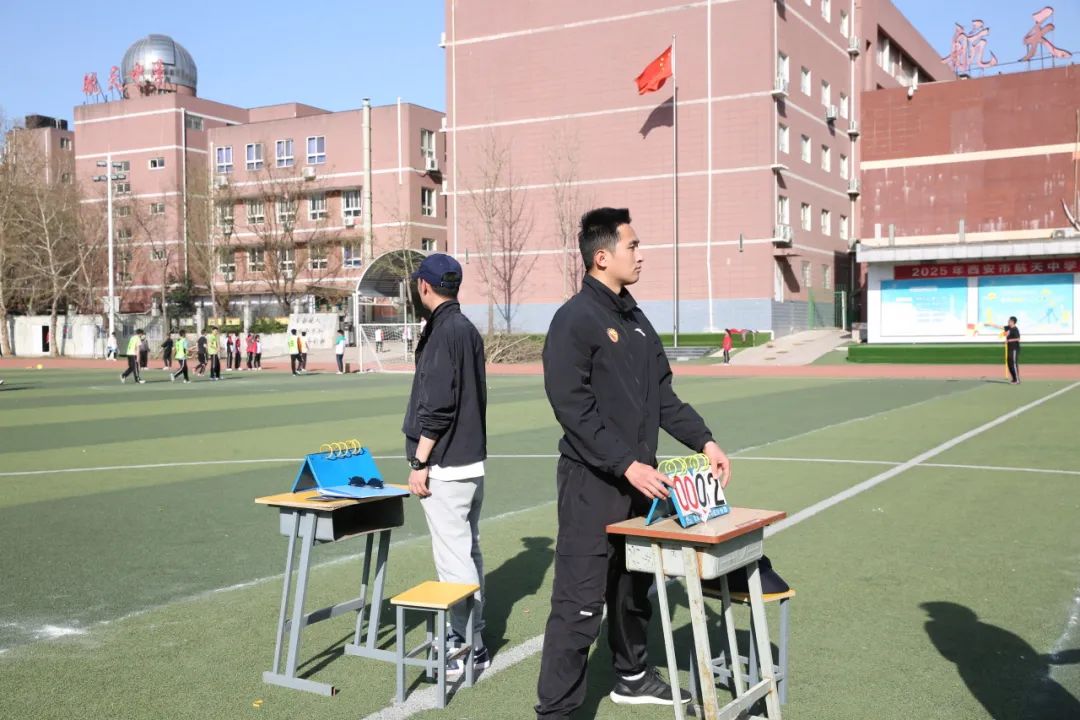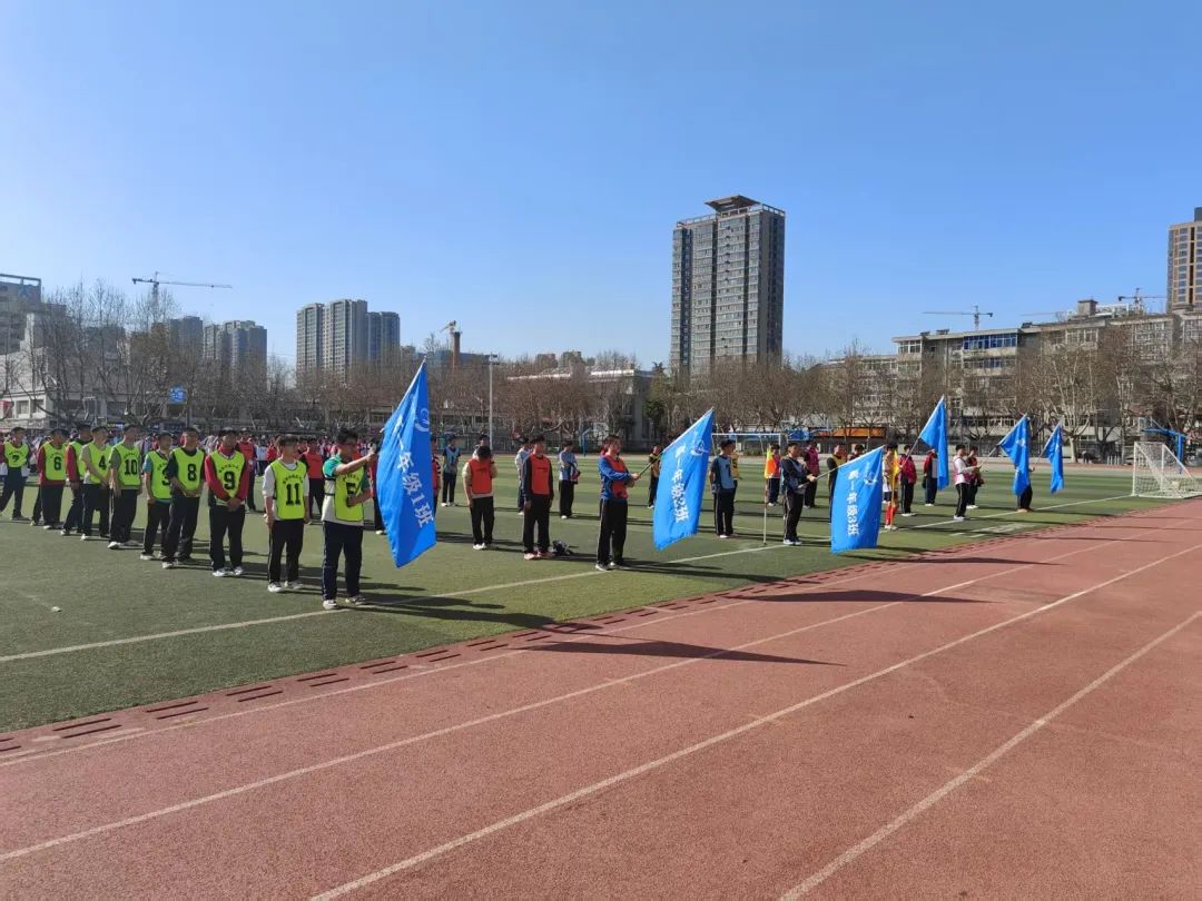 春日暖阳映照着绿茵场,2025年3月24日,西安市航天中学迎来了备受期待的校园足球联赛开幕式。班旗招展,欢声雀跃,师生齐聚操场,共同开启这场属于青春的体育盛宴。