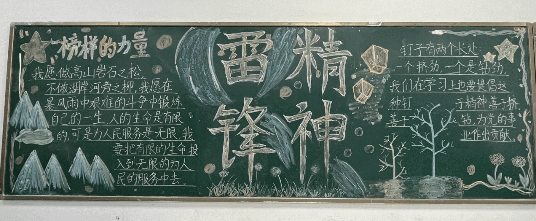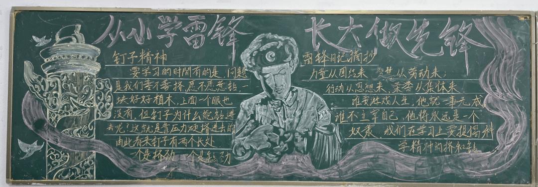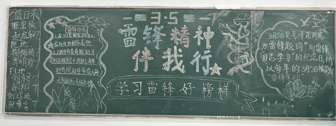 3月24日,各班级组织学生制作一期以“学雷锋”为主题的黑板报。同学们齐心协力,用粉笔勾勒雷锋的动人形象,描绘雷锋助人的温馨场景。通过打造“会说话的后墙文化”,积极宣传雷锋精神,营造良好的氛围。