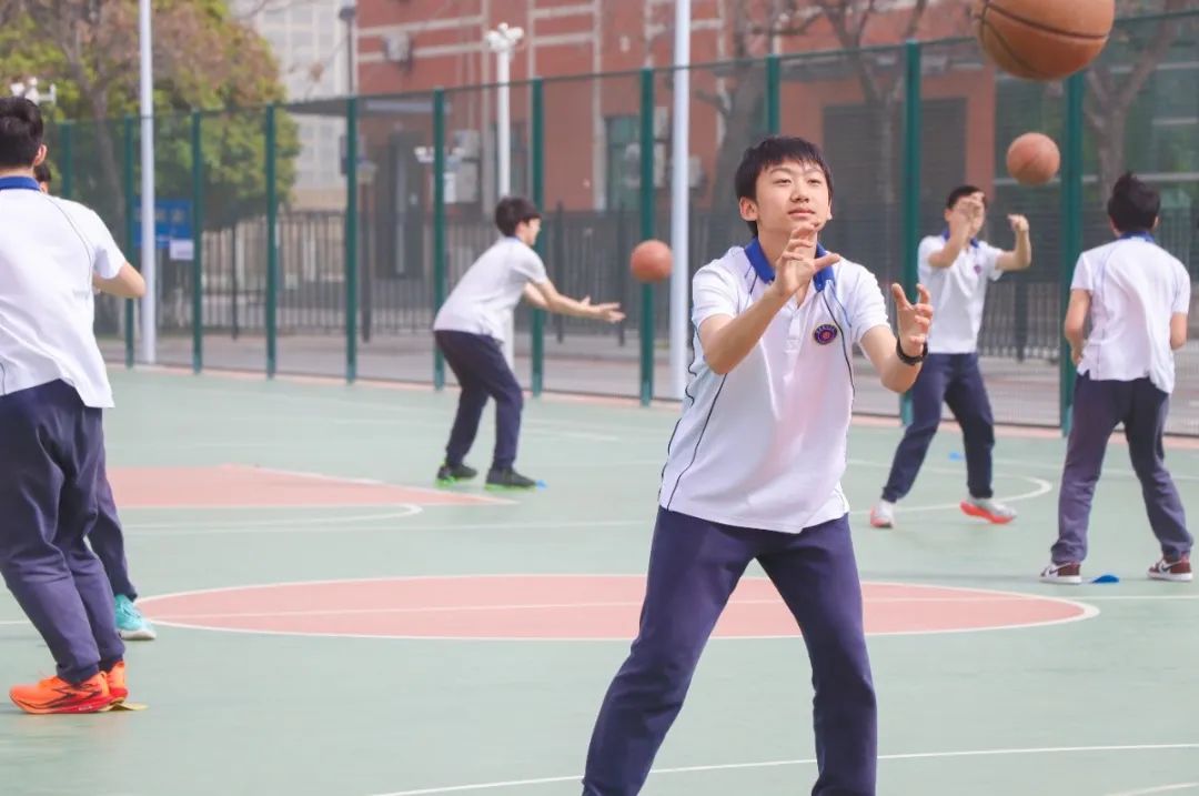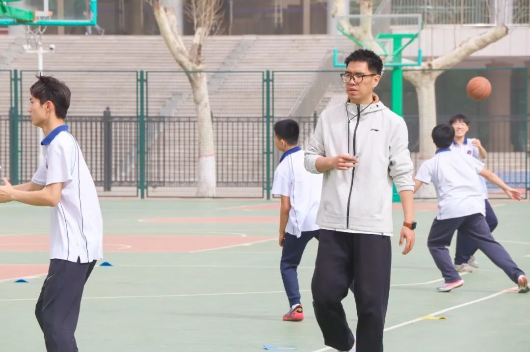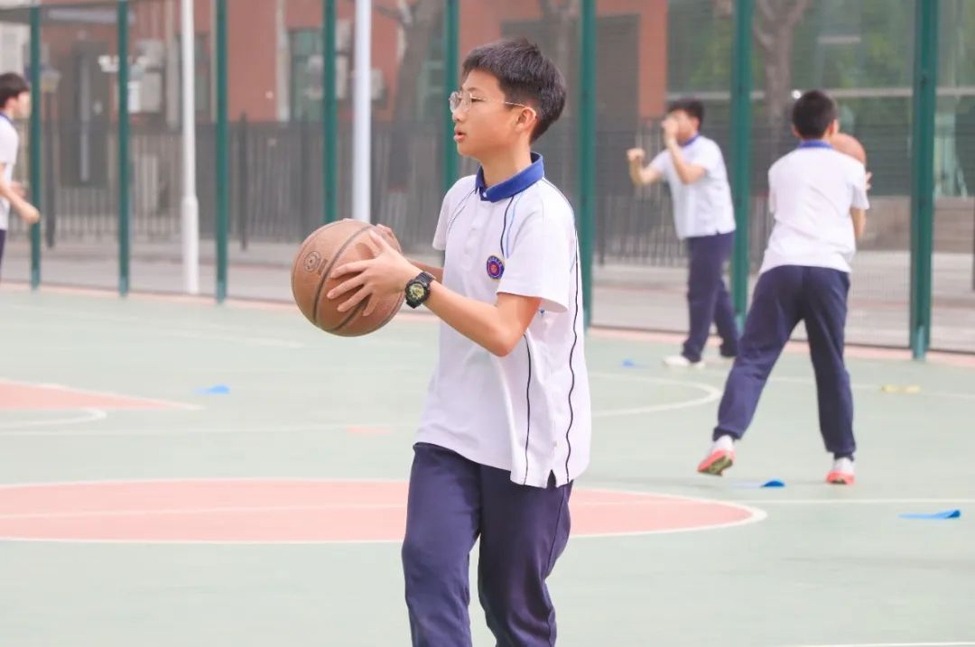 初中部马腾老师带来的《篮球——传切配合》一课以 "健康第一" 为指导思想,结合智慧课堂模式,面向八年级学生开展篮球项目中传切配合的练习。通过男女分项教学和差异化练习,重点培养传切配合意识,强调正确手型及动作协调性。
