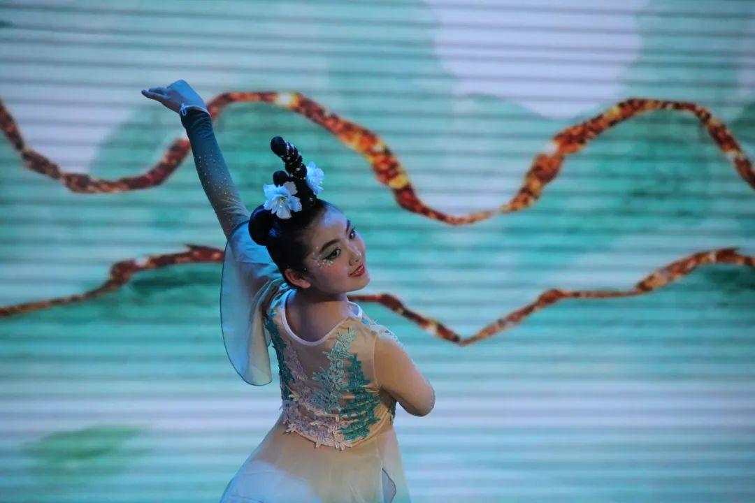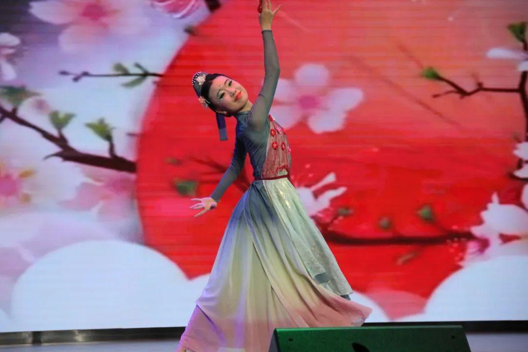 初一20班时雨涵用灵动的舞姿,在古典舞《锦瑟》中,将唐诗宋词的韵味展现得淋漓尽致,仿佛带大家穿越千年,领略古典之美;
