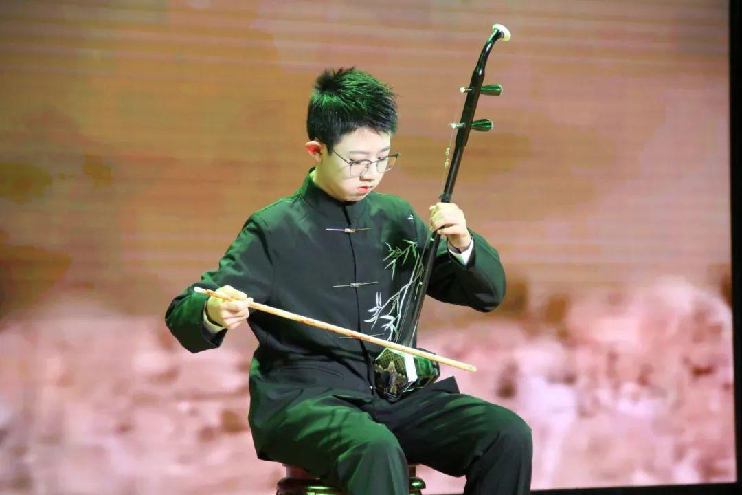 初一19班仲格菲用娴熟的技法,演绎琵琶曲《龙船》,奏响了千年竞渡的豪情,使现场观众仿若置身于百舸争流的激烈场景之中;