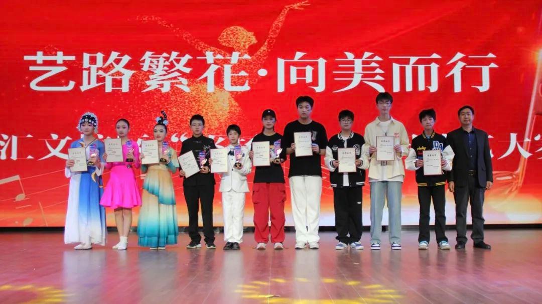 领导们为获奖选手颁发奖状和奖杯,对他们的精彩表现给予高度肯定。每一位获奖选手的脸上都洋溢着自豪与喜悦,这份荣誉不仅是对他们个人努力的认可,更是对全体同学追求艺术梦想的激励。