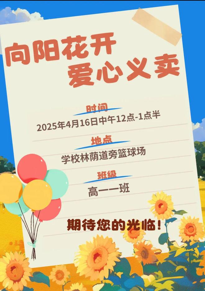 弘扬奉献精神,凝聚青春力量。此次“时光葵影 温暖携行”小葵花义卖活动是一次成功的爱心之旅,它宛如一阵和煦轻柔的春风,带着蓬勃的生机与希望,吹遍校园内每一个角落,所到之处,都营造出浓郁醇厚的爱心氛围。同学们在亲身参与实践的过程中,于潜移默化之间,学会了关爱他人、奉献社会,让善良与爱心的种子在心底生根发芽、茁壮成长。相信在未来的日子里,同学们将继续化作爱心的传递者,源源不断地将美好与善良传递下去,用自己的力量为社会增添一抹又一抹温暖而明亮的色彩,让爱的光芒照亮每一个需要的地方。