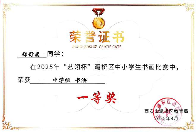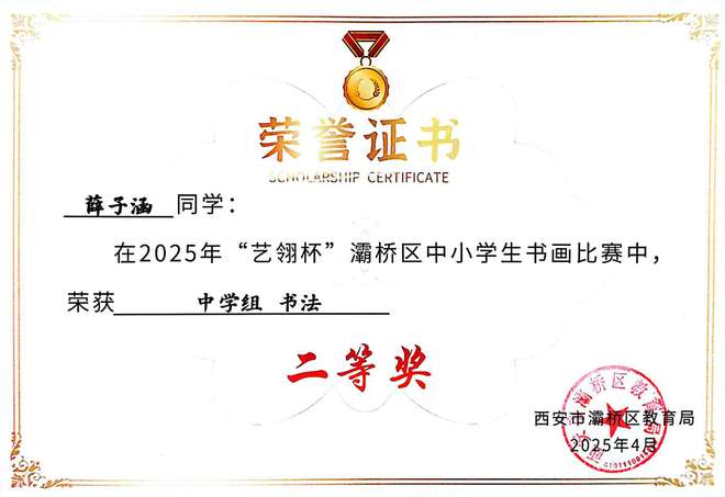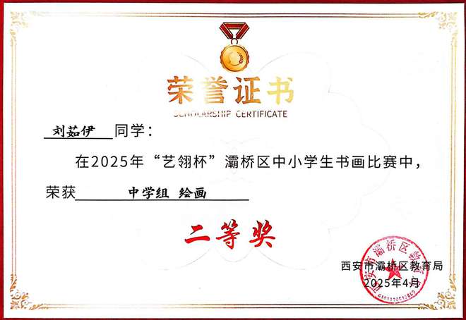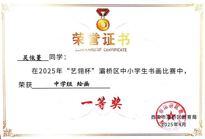墨染丹青,展少年笔底风华;艺绽赛场,显学子胸中丘壑。在2025年“艺翎杯”灞桥区中小学生书画比赛中,西安思源中学学子喜获佳绩!