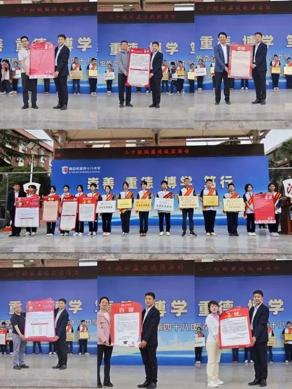 随后,上述高校向西安市第四十八中学送达喜报,并再次合影记录合作成果。