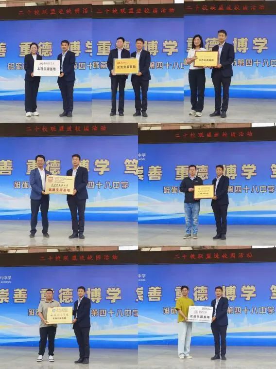 授牌仪式中,西安建筑科技大学、西安外国语大学、西安文理学院、西安航空学院、榆林学院、渭南师范学院、商洛学院、西安财经大学行知学院等8所高校代表向西安市第四十八中学授予“优质生源基地”牌匾,双方代表合影留念。