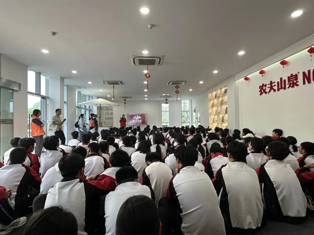 首先,同学们先来到了位于宝鸡眉县的农夫山泉厂,农夫山泉生产基地拥有全自动化生产线,展示了先进的生产技术和绿色低碳的生产方式。在水厂工作人员深入浅出的讲解声中,同学们充满好奇与渴望的眼眸紧紧锁定在每一个精密的设备上,近距离目睹了现代化流水线的高效运转。大家亲手进行水质检测实验,不仅学习到了宝贵的科学知识,更在实践中培养了动手能力和环保意识。面对水处理的种种奥秘,工作人员则以极大的耐心和专业的知识,一一为同学们答疑解惑。通过此次近距离地参观,同学们深刻领悟到了水资源保护的紧迫性与重要性,在他们心中种下了珍惜水资源的种子。