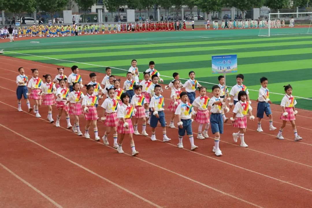 运动会在激昂的旋律中拉开帷幕。国旗方阵步伐铿锵,彩旗方阵舞动春光,各班级方阵以创意表演诠释萌娃们的活力与朝气。