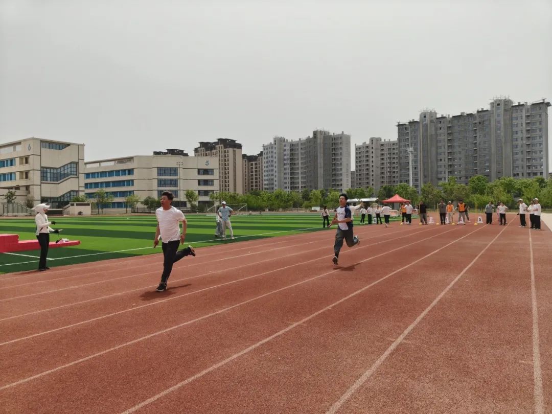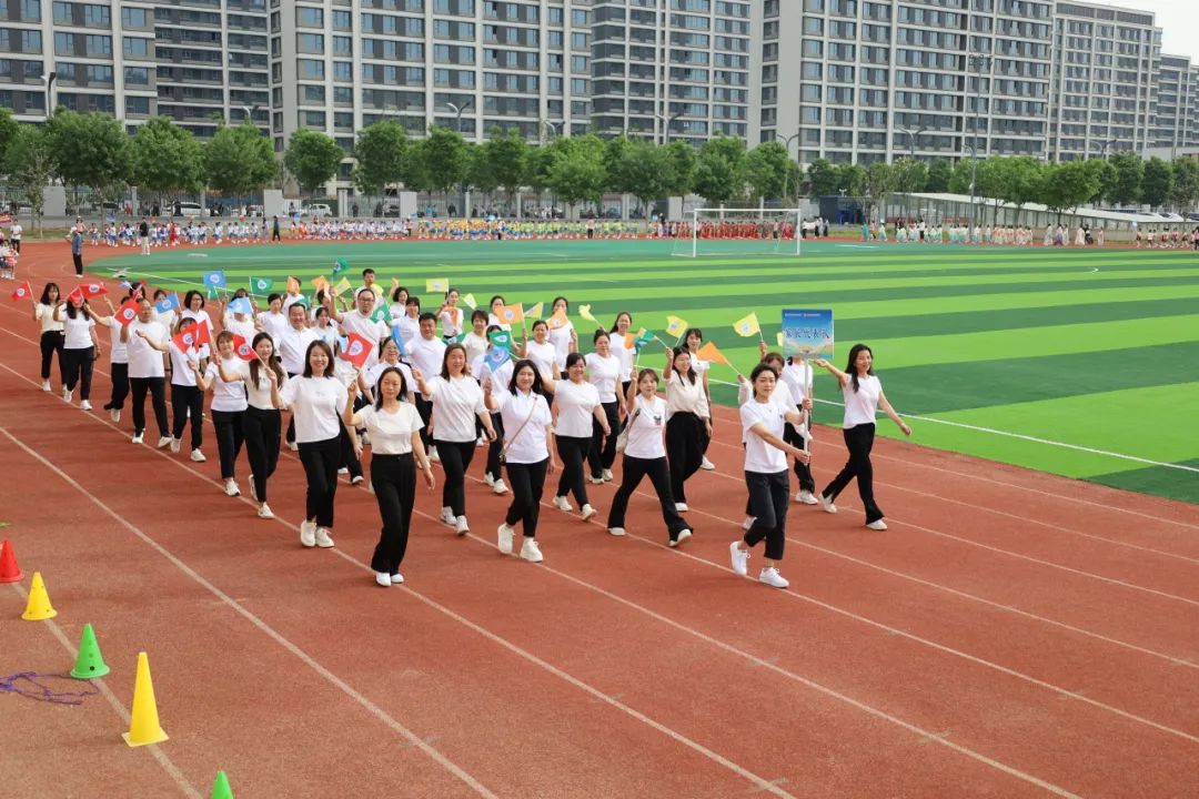 在同学们比赛间歇,老师与家长们在田径场上也为大家上演了精彩的接力跑,诠释了家校齐心,协同育人的育人特色。