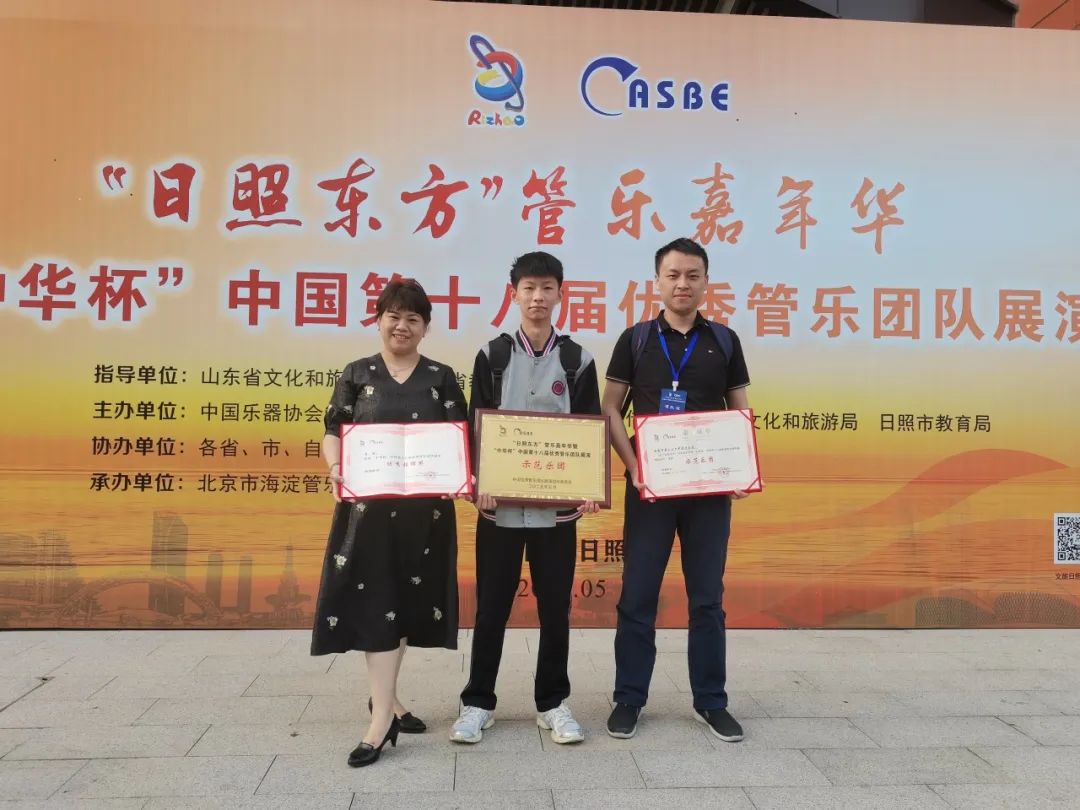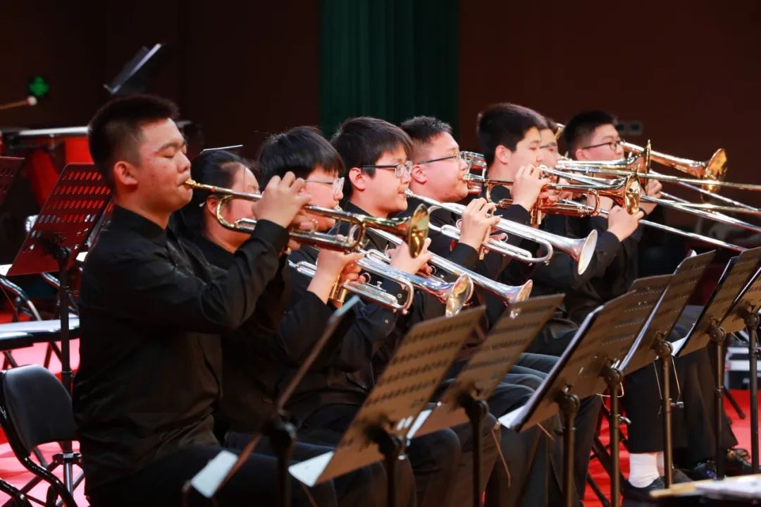 自筹备比赛以来,校管乐团的同学在指导老师的悉心教导下,克服重重困难,经过刻苦训练,踏上了前往山东日照的征程。舞台上,管乐团参演《在太行山上》《FOREVER SHINING》两首曲目,李聪老师以精准的节奏把控、充满感染力的指挥风格,引领团队奏响气势恢宏的乐章;乐团成员以整齐划一的动作、层次丰富的和声,将每一个音符化作艺术的火花,最终从赛场上脱颖而出,斩获至高荣誉。