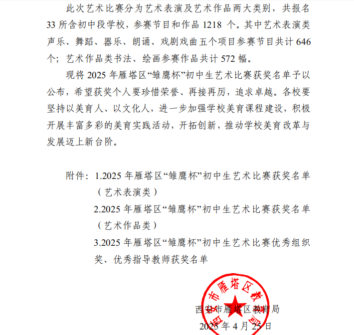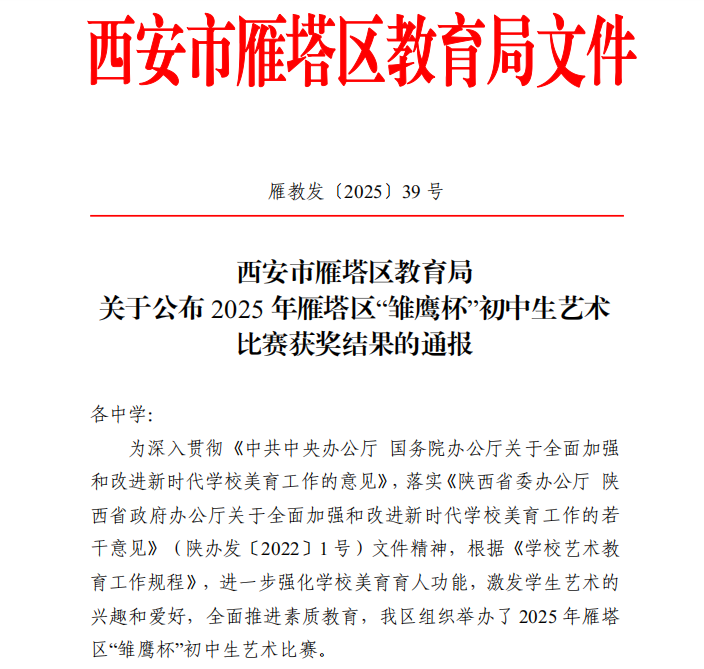 热烈祝贺 | 西安高新唐南中学多名师生在2025年雁塔区“雏鹰杯”初中生艺术比赛中喜获佳绩