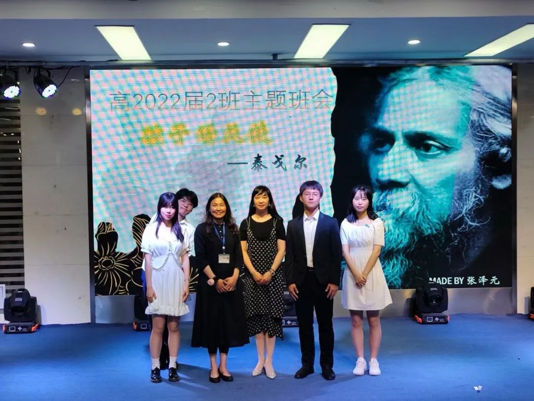 在实践中,我总结出一套以育人为核心的班级文化建设方案。高中生需要精神榜样的引领,树立榜样人物去启迪学生,往往能发挥很好的育人成效。在担任高2022届学生班主任工作的三年中,我探索出了用榜样人物对学生进行德育、智育和美育的主题班会模式。班会模式如下:学期初,我会根据班级学生的特点,确定一个能从精神上引领学生成长的榜样人物,然后去收集素材,主要是人物传记书籍和电影。我会亲自研读两本书,一本是该人物的自传,另一本是他人撰写的传记,从而获得两个不同的视角。电影则在平时的班会课上组织学生观看,并让他们撰写观后感,以便他们对榜样人物有一个整体的认识。这些工作通常在上半学期完成。下半学期,我将结合我对该人物的深入理解,设计班会的整体流程,撰写班会所需的各种文字稿。这个过程并不轻松,如何整合素材以表达榜样人物的精神内涵,如何设计能让学生深度体验的活动,对班主任的综合素质要求很高。当方案确定后,我会面向全体学生“招标”,从主持人到各个活动环节的表演者,班会海报的制作,PPT的制作及管理等,让学生选择自己想承担的角色,然后我提供一些素材和指导,鼓励他们对自己的角色进行二次创作。让全体学生在“沉浸式”情境中参与,从而深刻体验榜样人物的精神之美。班会排练完成后,面向全体家长和全校展示。