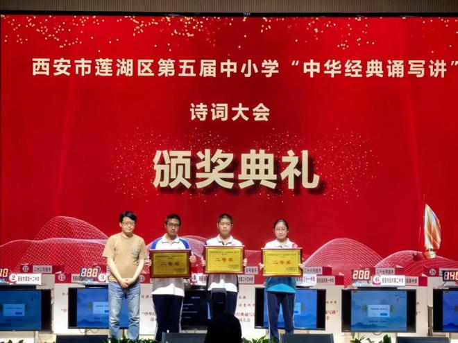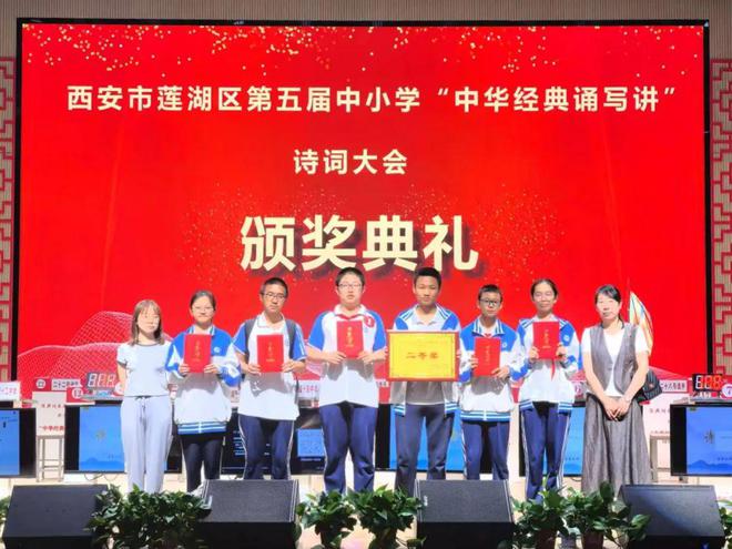 五月芳菲盛,捷报传佳音。在西安市莲湖区第五届中小学“中华经典诵写讲”诗词大会中,西安市远东第二中学师生凭借扎实的文学功底与出色发挥,获得初中组二等奖、高中组一等奖、教师组三等奖的优异成绩,体现学校在传承中华优秀语言文化教育中的优秀成果。