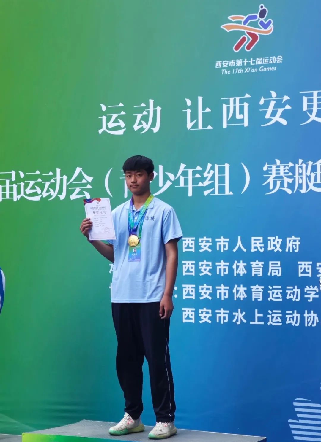 郑泽懿同学获得丙组男子200米赛艇第一名、丙组男子500米赛艇第二名。