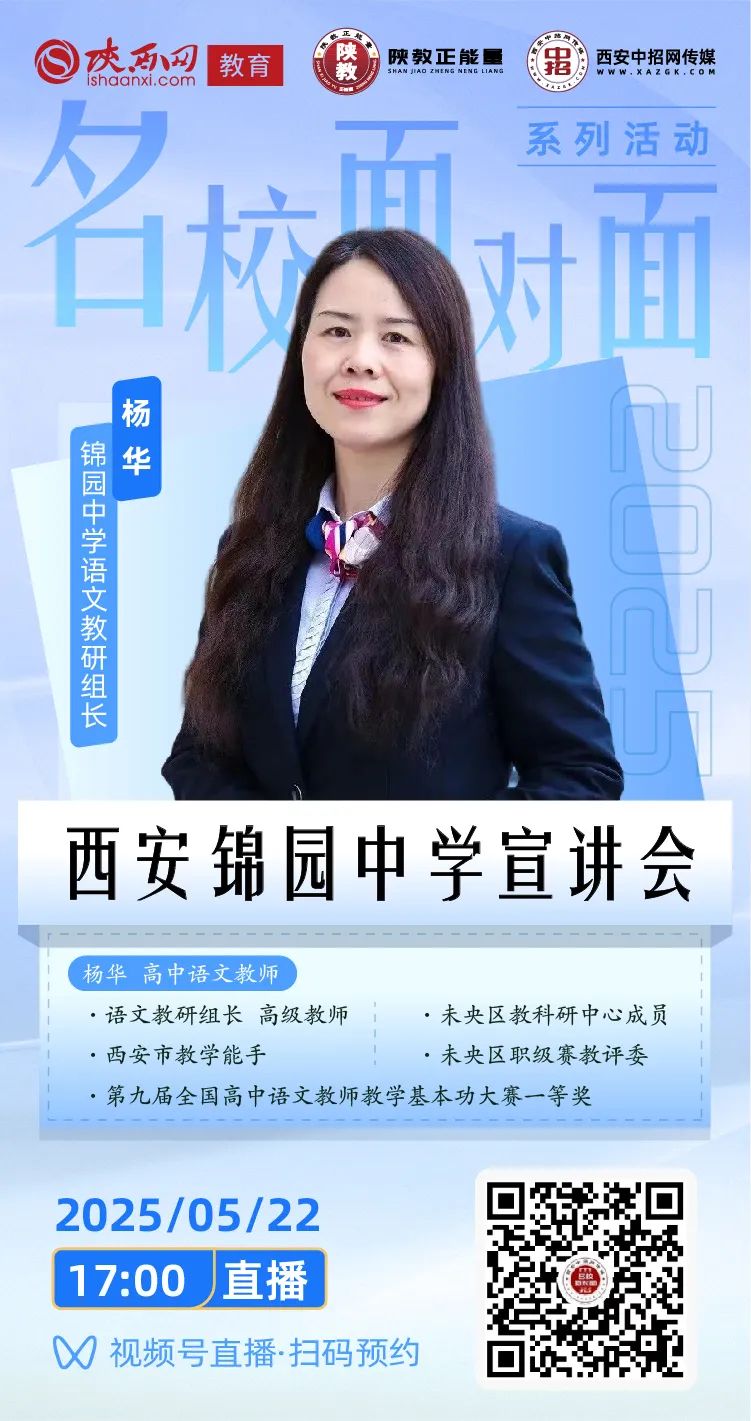 为全面展示西安锦园中学办学特色,2025年5月22日(星期四)学校携手陕西网开展校园探校直播及招生宣讲活动。