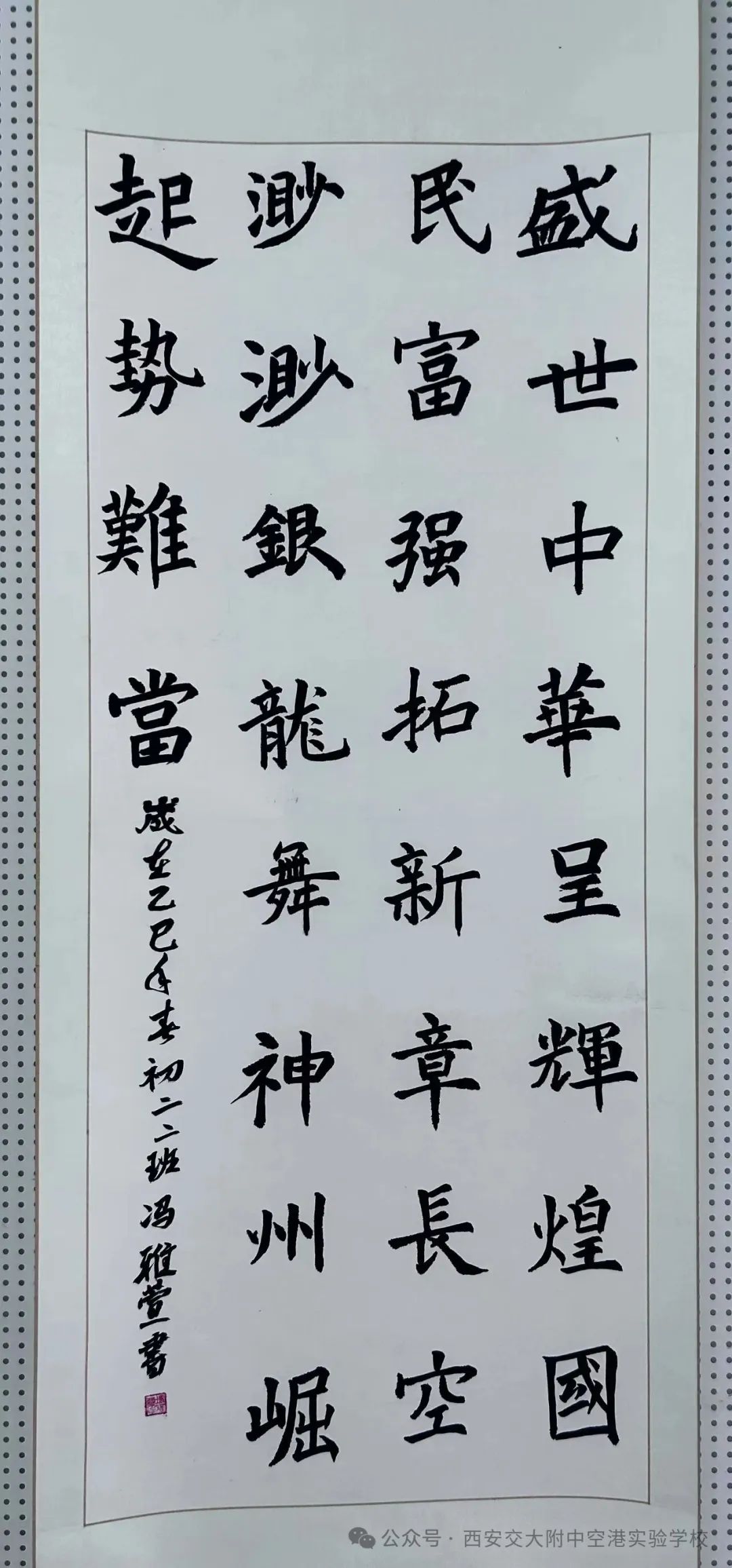 墨承古韵,书续华章。同学们以“抗日战争胜利80周年”为主题,用毛笔再现那段峥嵘岁月,传承红色基因。楷书工整端庄,行书飘逸洒脱,草书奔放自由。同学们用一笔一划书写着经典诗词和励志名言,展现出了扎实的书法功底和对传统文化的热爱。