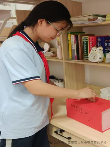 “时光信箱”活动中,住校生们写下对未来一年自己的期望、目标或给宿舍成员的一封信,封存于信箱之中。信箱由生活老师保管,毕业时开启,共同回顾成长与变化。