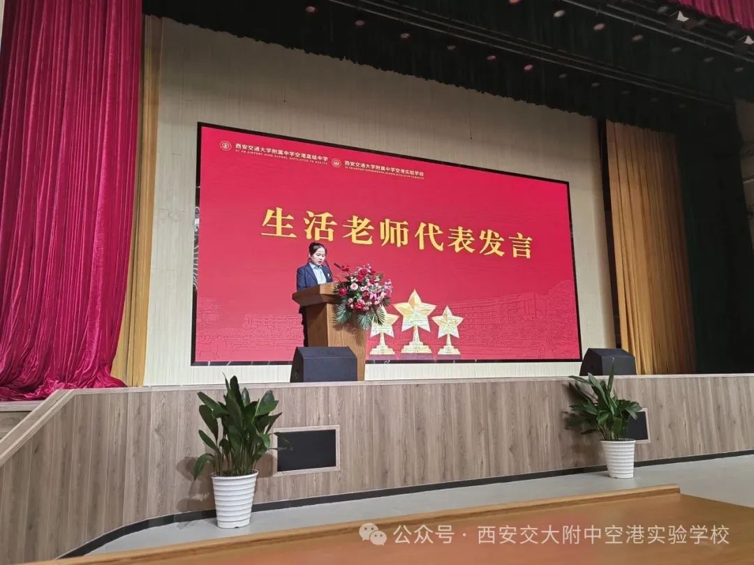 优秀生活老师代表朱月婕深情发言。她提到,宿舍是校园里学生们的“第二个家”,这里不只是供学生休憩的一方天地,更是培育良好习惯、塑造高尚品格、传递温暖情谊的重要课堂。朱月婕老师表示,生活老师们会始终如一地秉持爱心、耐心与细心开展工作,在执行严格且适度宽松的宿舍管理制度时,融入人文关怀,让制度有温度;在处理繁杂琐碎的日常事务中,传递真挚关爱,让学生们感受温暖。更重要的是,永远扮演好学生守护者和倾听者的角色,为同学们的健康成长保驾护航。
