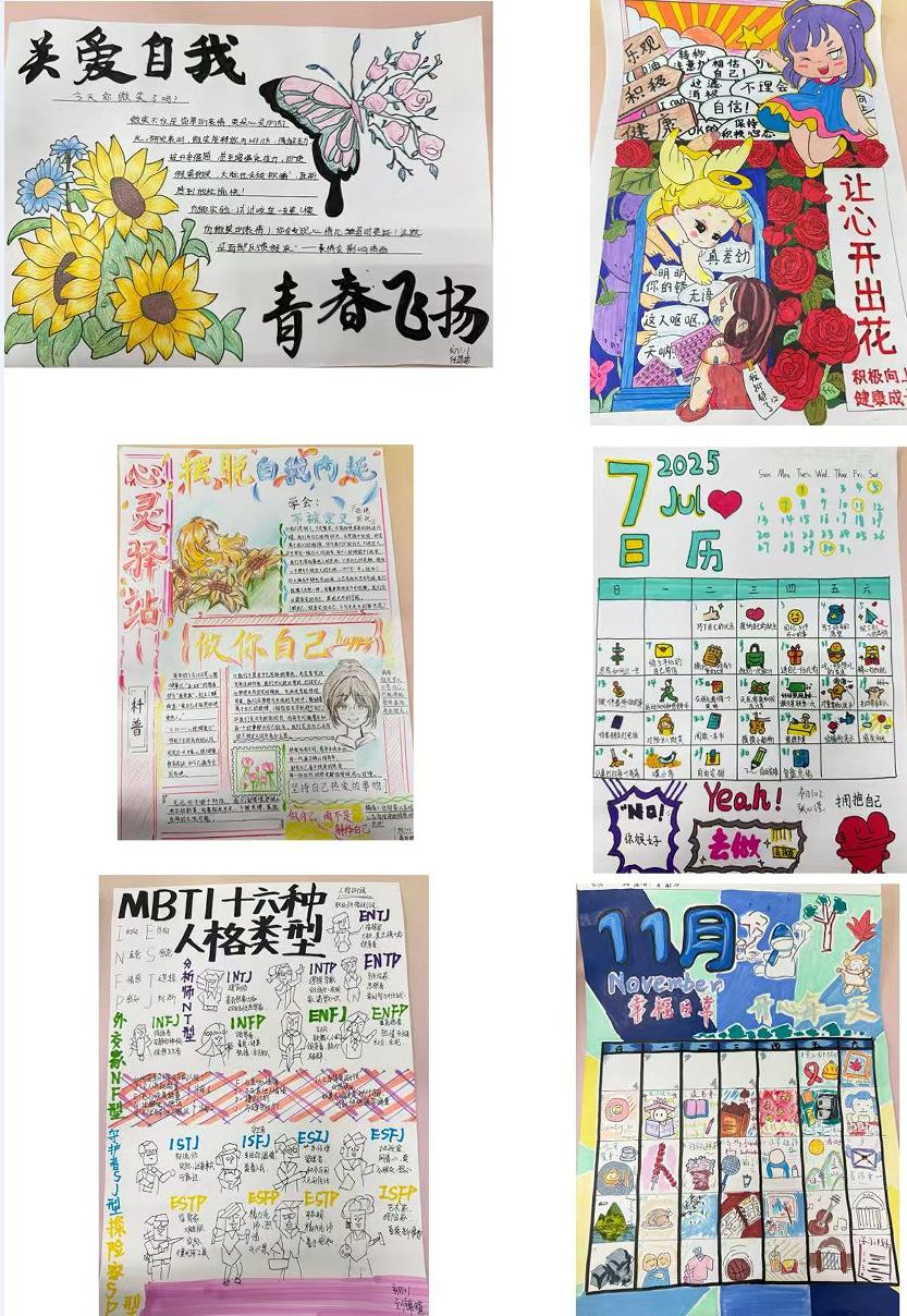 学校在初一年级举办以“心育沃土 沐光同行”为主题的手抄报比赛,同学们用手中的画笔和文字,描绘出一幅幅充满创意与情感的作品,展现了他们对心理健康的独特理解和感悟。