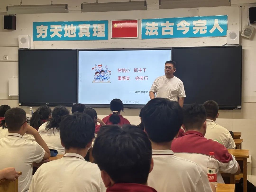 历史学科吕乔老师做了《树信心、抓主干、重落实、会技巧》的讲座。吕老师从整合资料,回归课本,梳理脉络,关注新题型,答题技巧与规律五个方面展开讲座,重点讲述了梳理脉络,更好的帮助学生在纷繁复杂的历史知识中,形成系统化的认知,加强记忆。