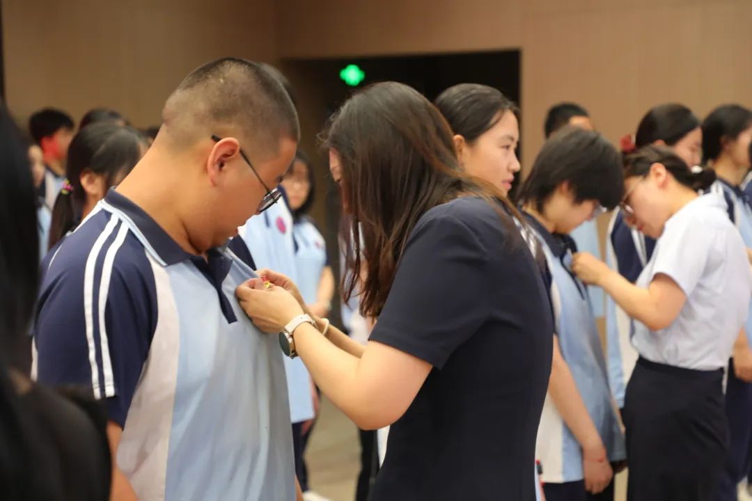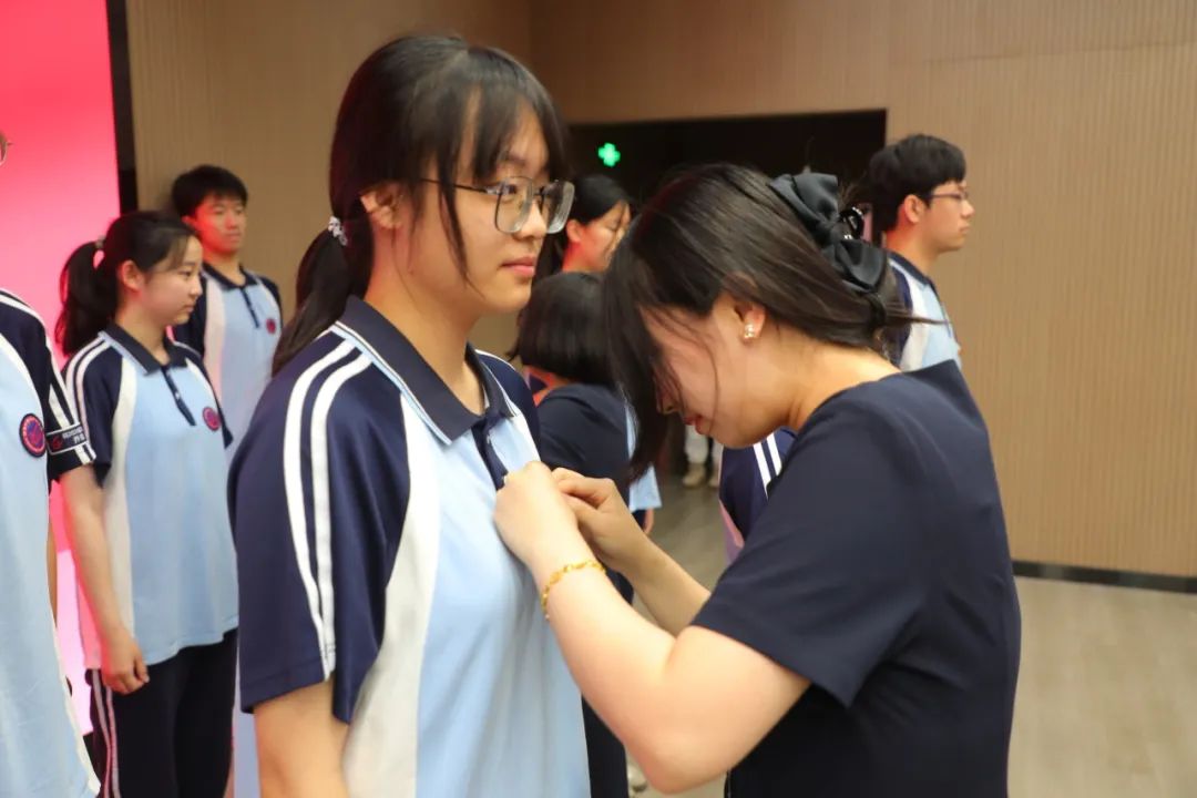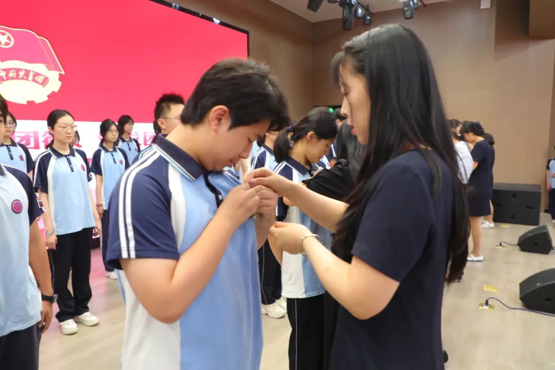 紧接着,李向超副主任宣读了新团员名单。每一个名字的响起,都代表着一位优秀的青年学子正式成为共青团这个光荣集体的一员。班主任们郑重地为新团员佩戴团徽,金属扣击的清脆声响,恰似文明传承的密码在代际间流转。