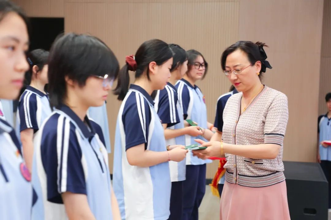 随后,黄景怡副校长及杜莉副校长为新团员颁发团员证,新团员们双手接过团员证,脸上洋溢着自豪与喜悦。这薄薄的证书承载着厚重嘱托——它既是开启信仰之门的钥匙,也是丈量人生高度的标尺。