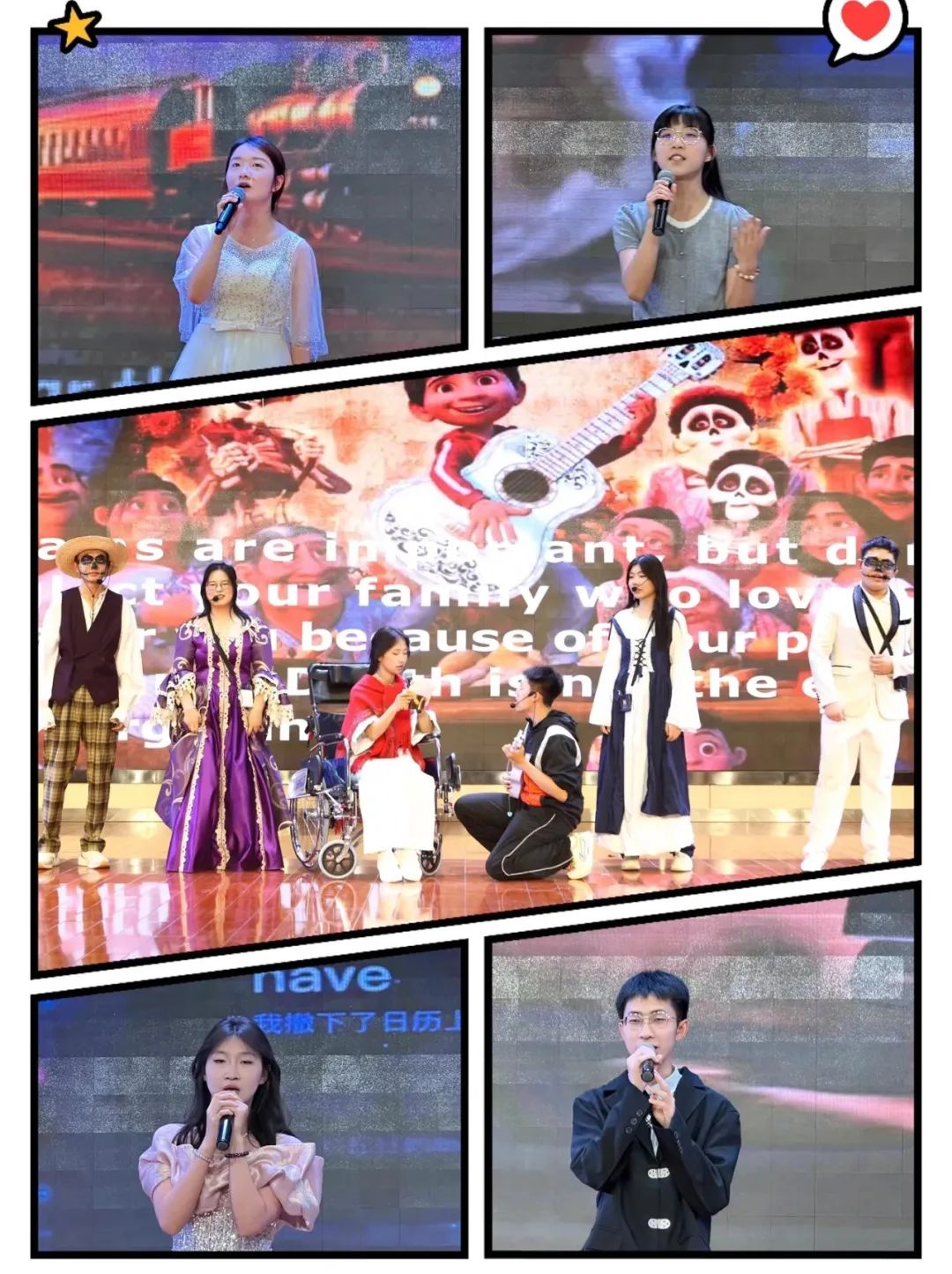 比赛间隙,还有超惊喜的“中场秀”!英文歌曲演唱环节,校园歌手们用天籁之音带我们“环游世界”,从治愈系民谣到热血摇滚,总有一首能唱进你的心里!英文课本剧表演更是创意拉满,经典名著角色“穿越时空”来到现场,夸张的表演、流利的台词,分分钟带你走进沉浸式英语世界!