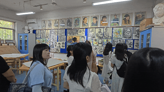 来访嘉宾依次参观技特色鲜明的工程教育开创中心活动室、青少年航校,浸润人文气息的校史馆、美术、书法篆刻教室,以及配备智能设备的录播教室、心理健康辅导中心。各部室负责人通过场景化讲解,立体呈现了学校“五育融合”的教育理念和创新实践。