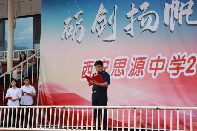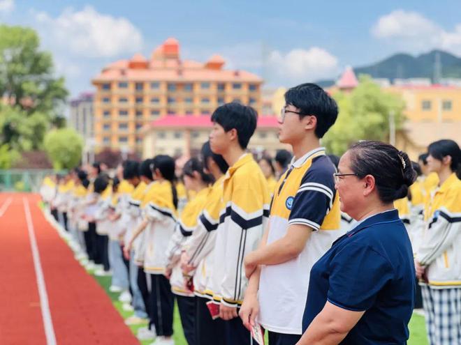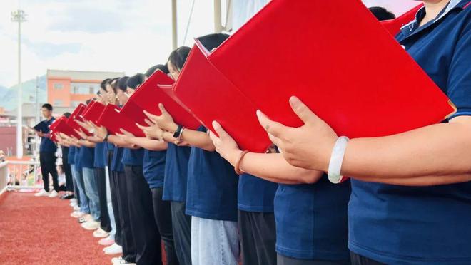高三(5)班学生代表高李赫果以 “从太白县出发,向理想之巅进军” 为题发表宣言:“今天我们在秦岭脚下立下誓言,明年六月定要让思源的旗帜在梦想高校飘扬!” 他带领全体学子举起右拳,誓言 “以笔为剑斩破难题,以纸为帆驶向彼岸”,铿锵之声在亚高原群山间形成回响。